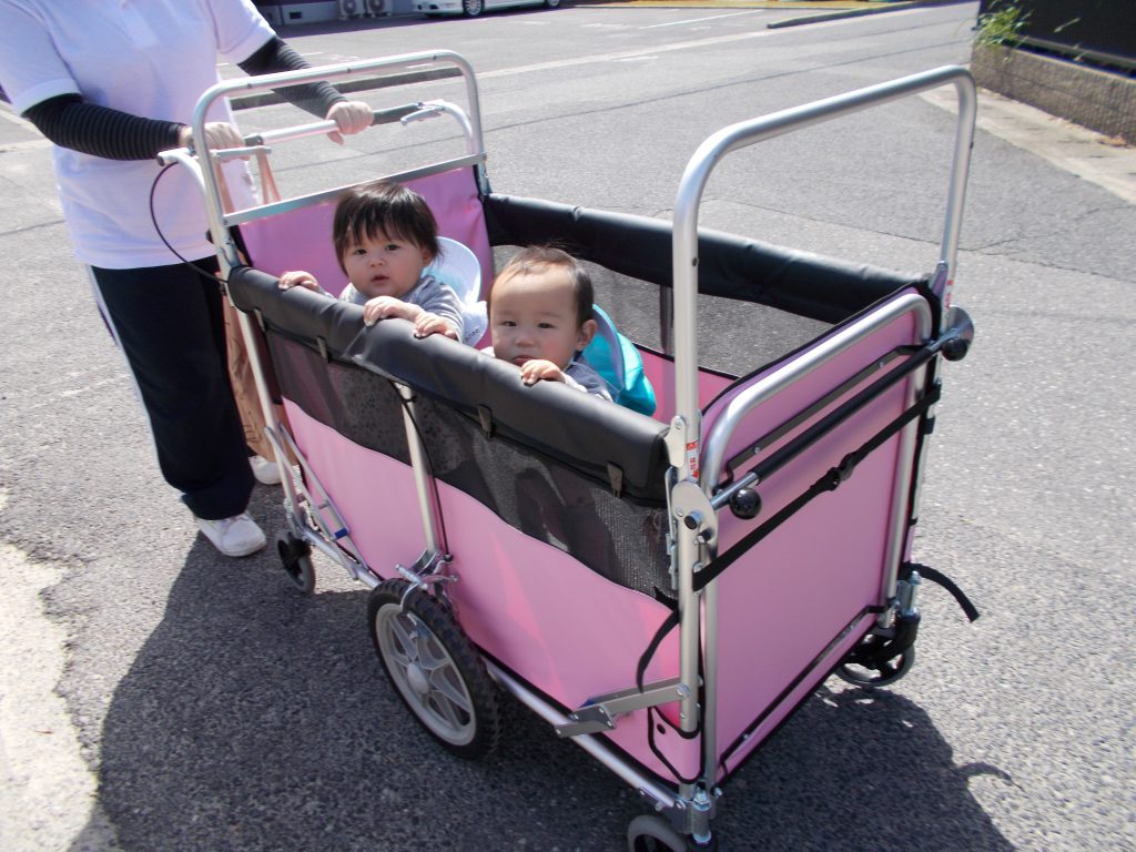 初めてのお散歩カーで涙が出る子も![]()