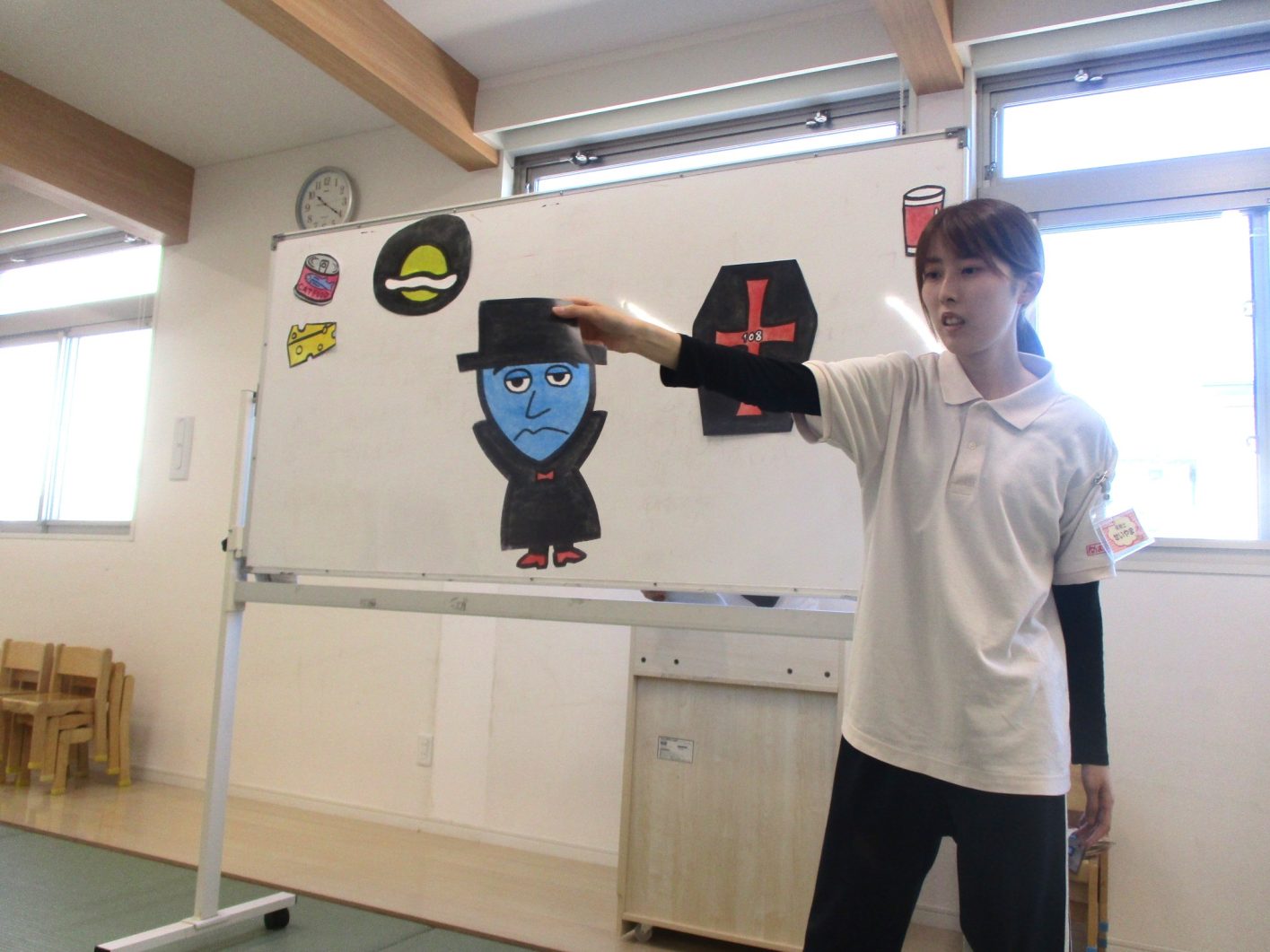 先生からの出し物は「おばけマンション」でした![]()