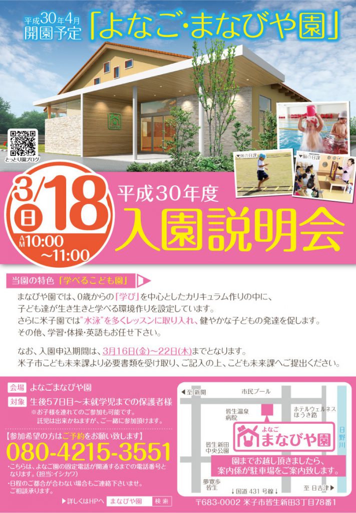 「よなご・まなびや園 平成30年度入園説明会」